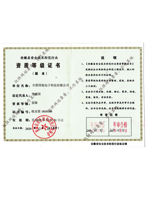 公司現(xiàn)已獲得承裝(修、試)電力設(shè)施許可證、電子與智能化工程專業(yè)承包壹級資質(zhì)、建筑裝修裝飾工程專業(yè)承包壹級資質(zhì)、消防設(shè)施工程專業(yè)承包貳級、安全技術(shù)防范行業(yè)壹級資質(zhì)、雷電防護裝置檢測資質(zhì)證乙級資質(zhì)、安全生產(chǎn)許可證、通過ISO9001:2015質(zhì)量管理體系認證、ISO14001:2015環(huán)境管理體系認證、OHSAS18001:2007職業(yè)健康安全管理體系認證等榮譽。我們還將進一步努力,爭取贏得更多的榮譽。